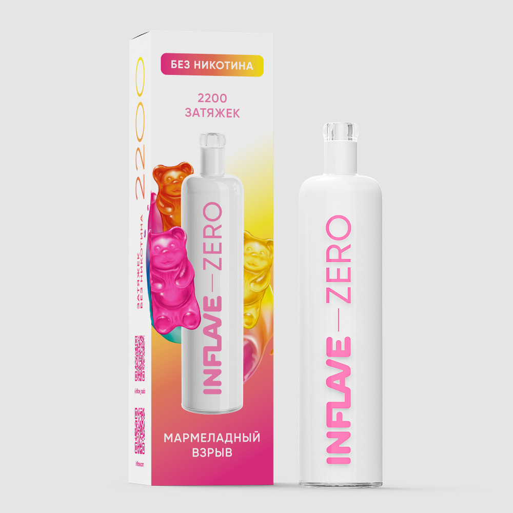 Электронная сигарета Inflave Zero 2200 затяжек Мармеладный Взрыв со вкусом сладких фруктовых мармеладных мишек с приятным и нежным послевкусием.